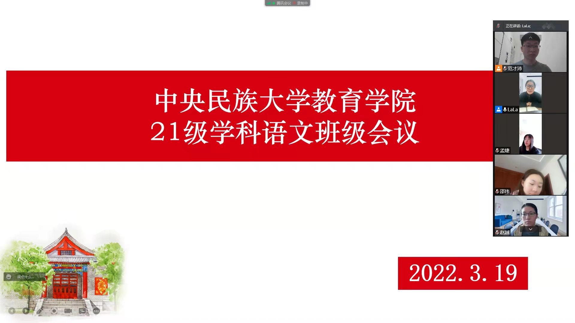 2022年3月19日,教育学院21级学科语文专业以“凝心抗疫,聚力勤学”为主题召开线上班会,班会由迪拉娜老师主持。