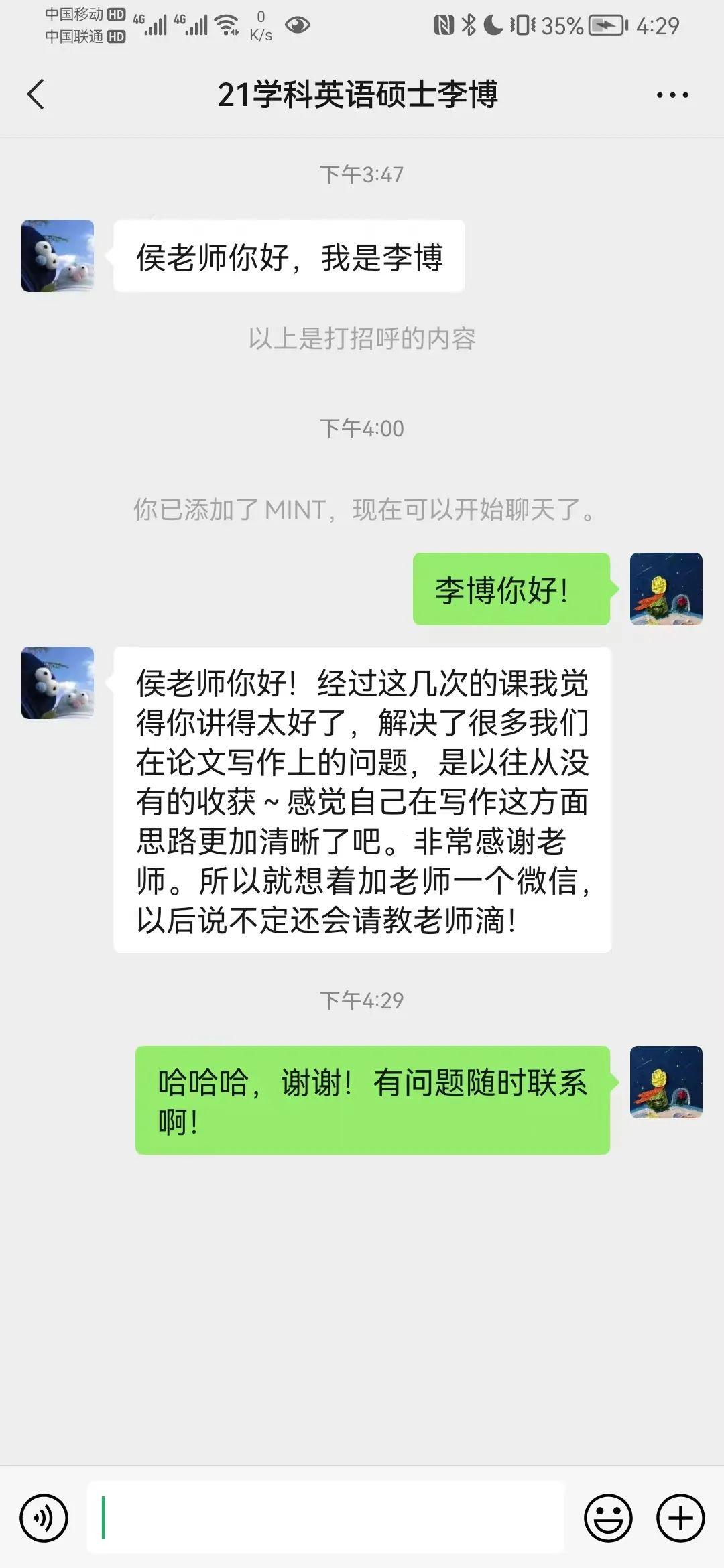 在《音乐教学设计与实施》课中,崔老师对我们进行手把手的教学,每位同学都能在教案、ppt方面得到老师的亲自指导,对于同学们出现的各种各样的问题,崔老师也能够及时地给出方案进行解答。在崔老师的这门课程当中,我更加了解了教案以及ppt的制作要点,也逐渐明白对于不同年龄段的学生该如何进行说课,不管是在语言还是在语调上,都应该根据学生的情况进行变化。虽然疫情阻挡住了我们见面的脚步,但我相信,疫情没有办法阻挡住我们学习的脚步,希望疫情能够早些结束,与同学和老师在校园相见!
