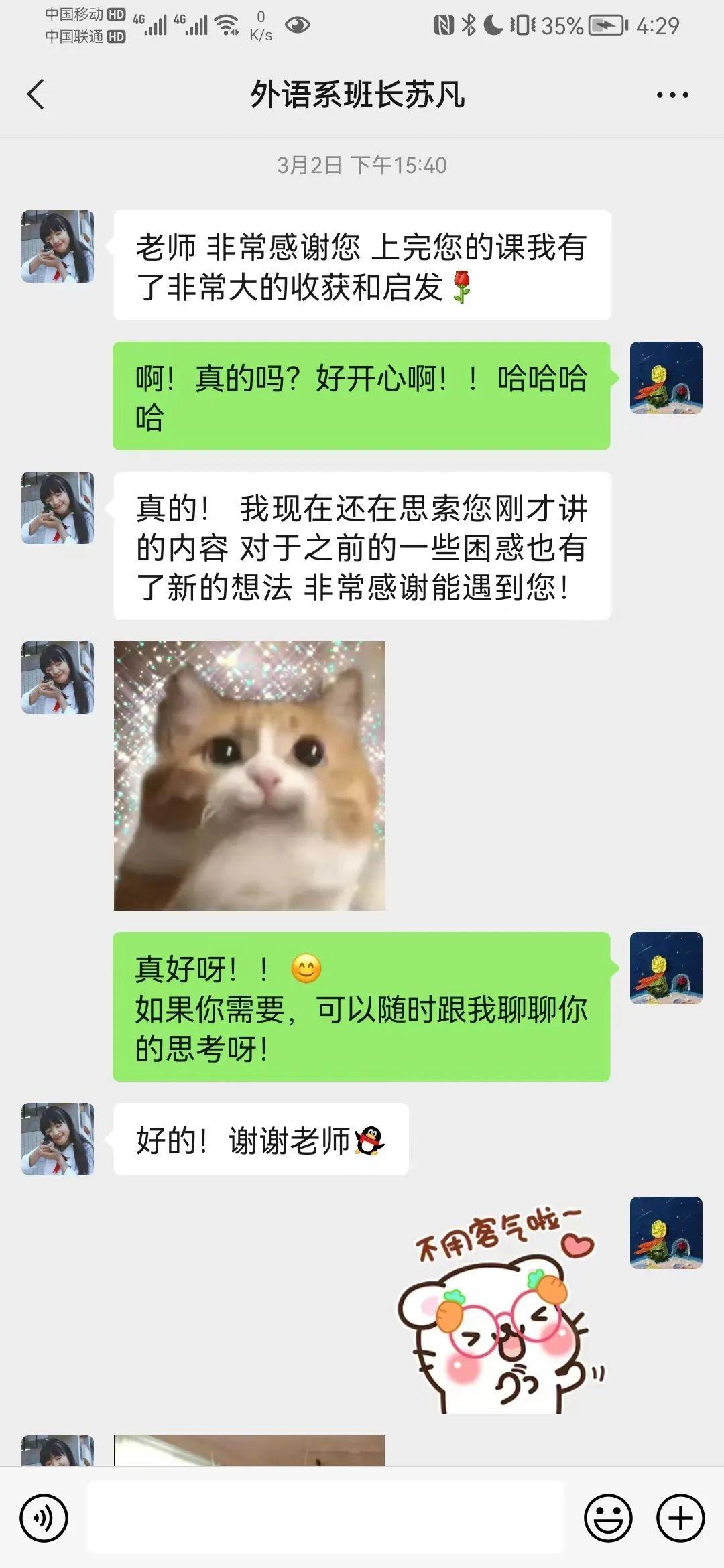 在《音乐教学设计与实施》课程中,崔老师带我们一起学习了中小学音乐教案的写作与讲课实践,包括音乐欣赏课、唱歌课以及音乐社团教案写作。虽然本学期目前未能返校,由线下暂时改为了线上教学,但通过腾讯会议,崔老师非常有耐心地对我们每个人的教案和课件制作都进行了一对一的指导和修改,并在具体的讲课过程中锻炼我们的语言组织能力,帮助梳理我们的讲课思路,让我们不管在写作还是讲课方面的能力都得到了提升。愿疫情早日结束,期待早日和老师同学们在校园相聚!