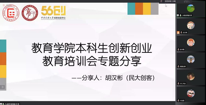 在会议后半部分中,william威廉中文官网创新创业优秀代表胡汉彬博士为教育学院的本科生进行了创新创业教育培训专题分享。胡汉彬同学从william威廉中文官网的背景与已有的大创比赛获奖成果出发,总结了在教育方面可以参加大创比赛的发展方向与现实机遇;从创业来源、创业方向选择、创业组队、制定创业计划书和实际操作几个方面对创新创业比赛进行了详细讲解并总结了经验,同时,胡汉彬学长也针对比赛可能出现的问题依次进行了详细的说明。