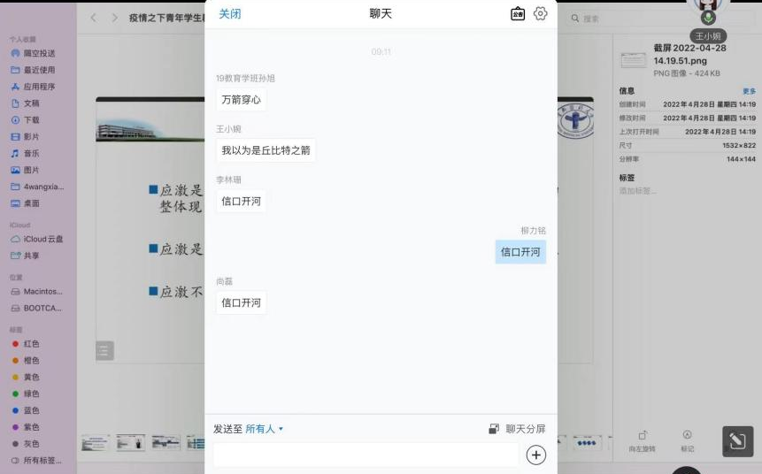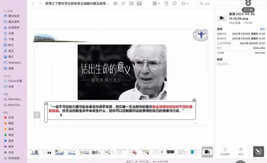 最后,王小婉老师还向参会人员推荐了书籍《活出生命的意义》,呼吁同学们在疫情常态化形势下以积极面对代替消极抱怨,争做肯服务、肯付出、肯奉献的新时代青年,与国家共赴疫情大考。