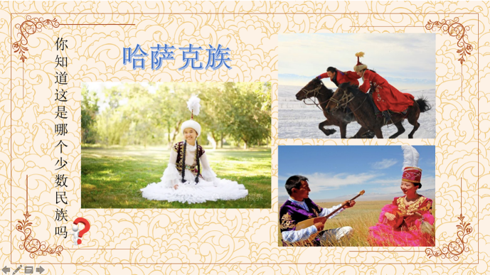 教学导入:通过展示有哈萨克族相关的图片,提问同学们“你知道是哪个民族吗?”