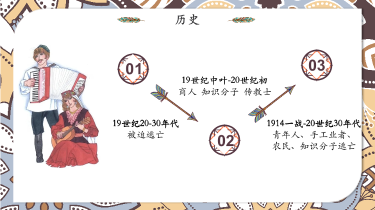 内容包括:塔塔尔族的简要历史、人口分布、服饰、美食、节日。塔塔尔族的简要历史主要分为三个时期,塔塔尔人主要是从如今的俄罗斯因各种原因到达我国新疆地区,目前主要居住在塔城、乌鲁木齐和阿勒泰等地区。在人口数量方面,根据2010年的人口普查数据显示,塔塔尔族是56个民族中人数最少的民族。他们会穿着漂亮的服饰,吃着可口的黑眼睛(喀拉阔孜)等,欢度肉孜节、古尔邦节、撒班节!