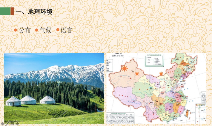 内容包括:哈萨克族的地理环境、生产生活、传统美食。