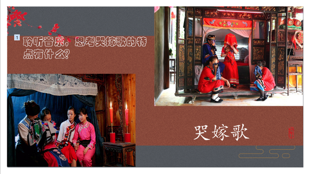 接下来,将土家族音乐分为土家族民歌和土家族器乐两个部分进行欣赏。