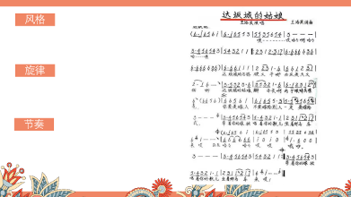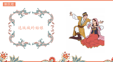 设计意图:维吾尔族民歌是非常丰富的,可以分为传统民歌和新民歌两大类。通过对传统民歌和新民歌的创作背景、音乐特征的介绍,采用提问和节奏互动的方式,使学生亲身体会维吾尔族的民歌风格和音乐特点。