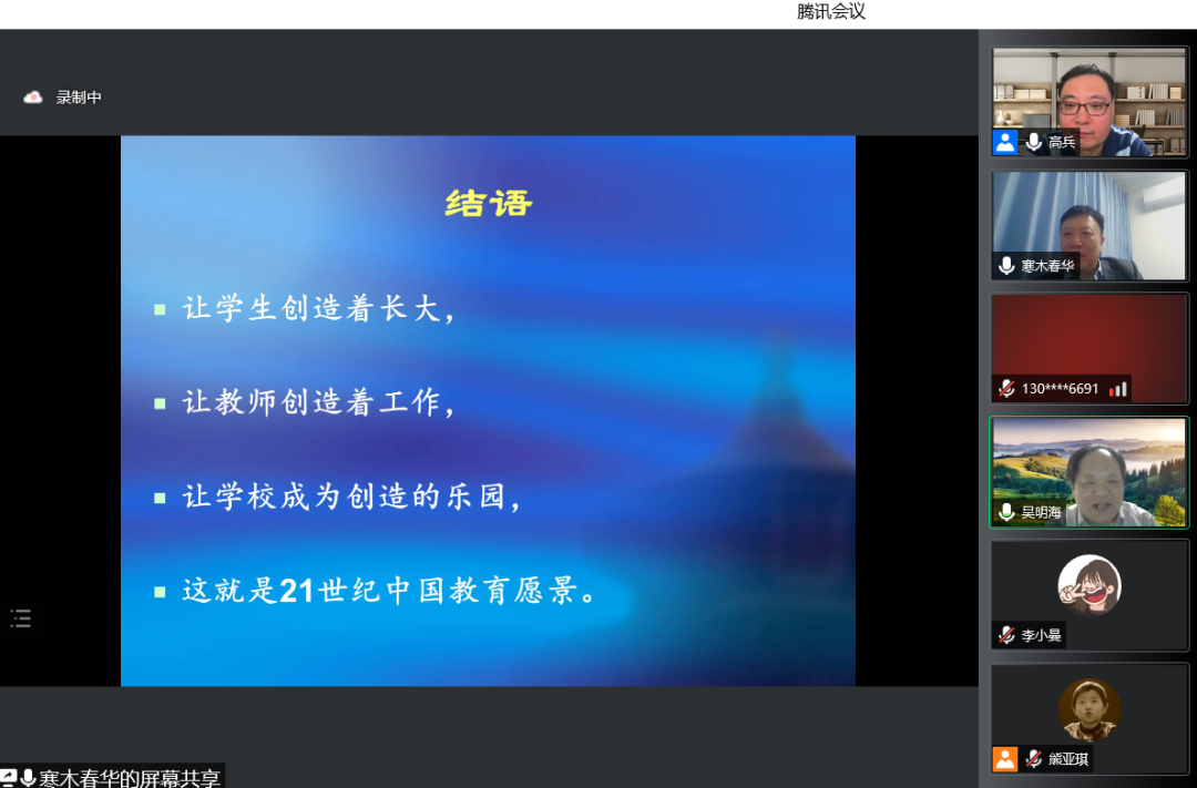 张华教授以“让学生创造着长大,让教师创造着工作,让学校成为创造的乐园,这就是21世纪中国教育愿景”为结语升华了此次讲座的主题。