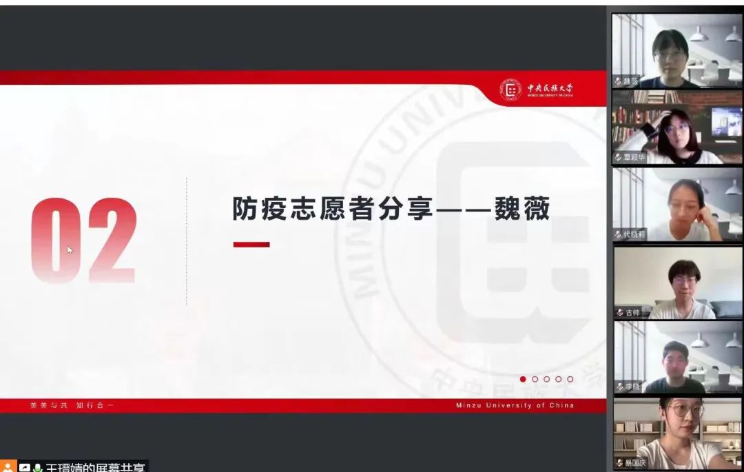 随后魏薇同学分享了她担任抗疫志愿工作的经历。在志愿工作中,她协助社区完成信息录入、体温检测等工作,得到了社区居民们的积极配合与认可。她表示,点滴微光可成星海,作为即将步入社会的青年学子,这样的实践经历为她提供了诸多经验。