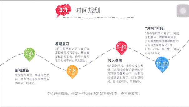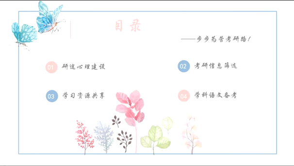 路瑶介绍了自己的三次考研经历,并对考研专业及院校选择的经验做了详细的讲解。她分享了自己在备战考研期间的时间规划与心态变化,强调了找到自己的节奏、提高效率和坚定信念的重要性。然后她分享了自己在二学位期间的收获,“学到了知识,开阔了眼界,感受到了老师们的指导和关怀和真诚的友谊”。最后她以“靡不有初,鲜克有终”结尾,鼓励大家不忘初心,砥砺前行。