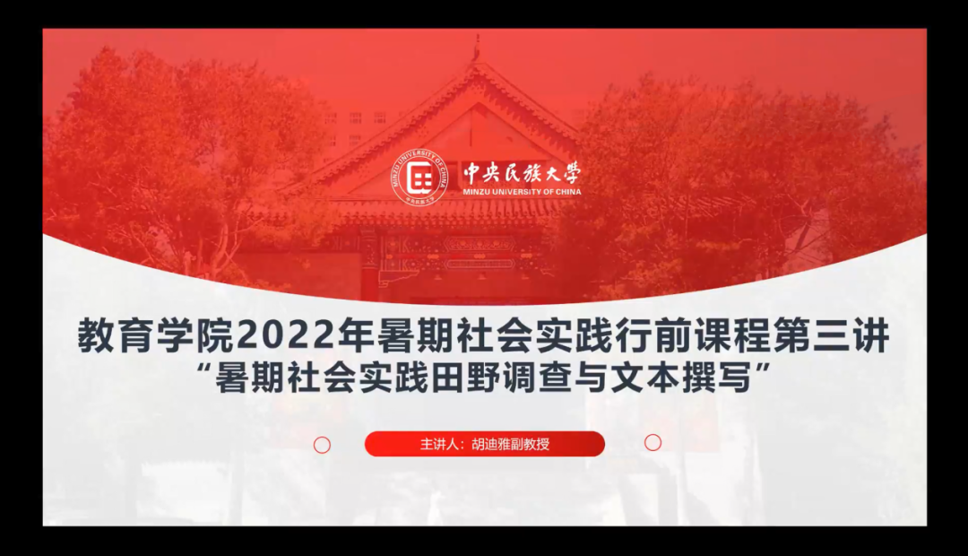 为响应校团委的号召,促进暑期社会实践活动顺利且高质量开展,教育学院于2022年7月10日上午9点召开暑期社会实践行前课程第三讲——“暑期社会实践田野调查与文本撰写”。