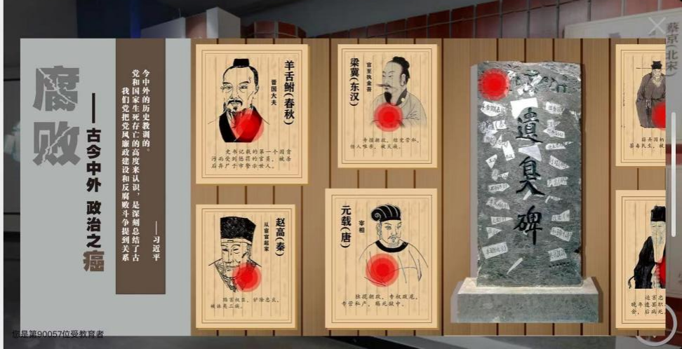 教育学院全体教职工通过云南省反腐倡廉警示教育基地“云上数字展厅”,以线上参观的形式深切感受到“一念之差”到“一墙之隔”的冲击。进入“云上数字展厅”伴随着娓娓道来地解说、铿锵有力地音乐,通过虚拟现实技术将展馆的面貌生动形象地展示在我们面前,让大家切身感受“贪廉一念间、荣辱两重天”的不同人生状态。