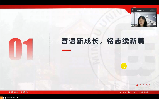 最后,她希望大家能够坚定、从容、心怀热爱地体验与享受大学生活,也希望大家能将教院团结奋进的信念坚定地传承下去,以自己的方式热爱、贡献、建设更好的教院。