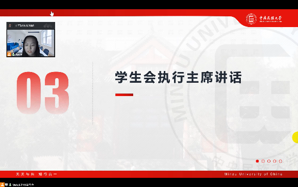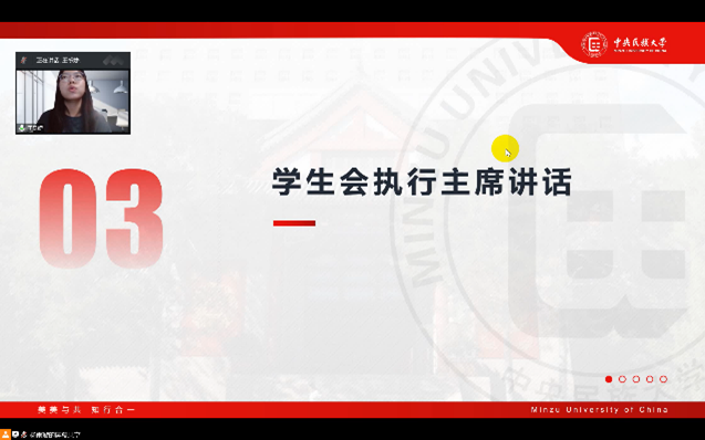 接着执行主席王砾婕发表讲话,热烈欢迎了新加入教育学院团学组织的新干事们。她结合自己过去的团学工作经历向大家分享收获与感悟,指出这是一个新的开始,并提出了以下几点希望: