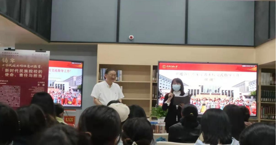 此次讲座苏德教授从多个角度讲授了新时代如何铸牢中华民族共同体意识以及民族院校如何加强铸牢中华民族共同体意识教育工作,开阔了老师和同学们的视野。教育学院党委书记闫建敏老师希望各位同学努力学习,为实现中华民族伟大复兴伟业积极贡献力量。
