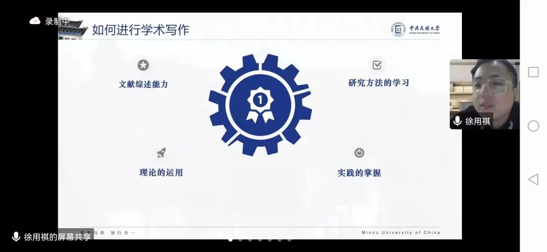2022级教育学博士研究生徐用祺学长通过四个板块的内容向学弟学妹们分享了自己的学术之路,依次为如何安排学习时间、如何进行科研、如何学术写作以及考博的抉择。徐用祺学长表示研一的同学们当前阶段第一要务是明晰发展方向,分解目标、分清主次矛盾,逐一攻克每一个小目标;其次,学长着重为同学们分享了如何进行学术写作等问题,提醒研一同学要提高学术敏锐度,擅于发现教育热点问题,继而运用教育学理论去阐释问题、解决问题。