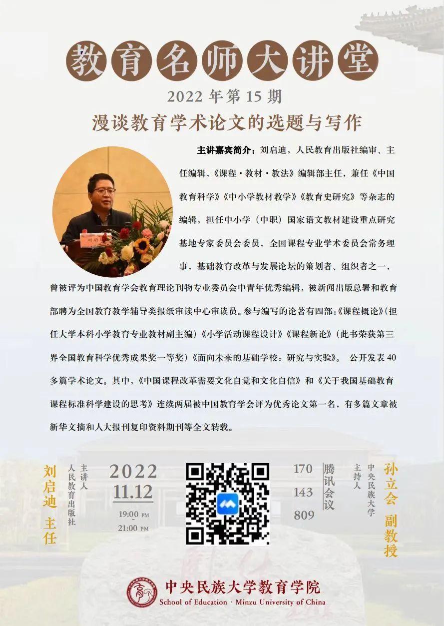教育名师大讲堂 | 2022年第15期《漫谈教育学术论文的选题与写作》