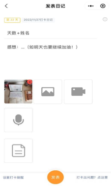 打卡要求:照片备注个人姓名与打卡日期,并附上学习心得(今日学习成果、明日学习计划、学习心情、名人名言等均可,内容不作限制),如图所示: