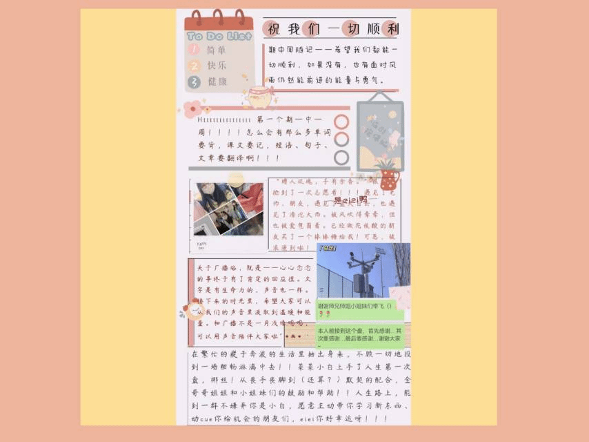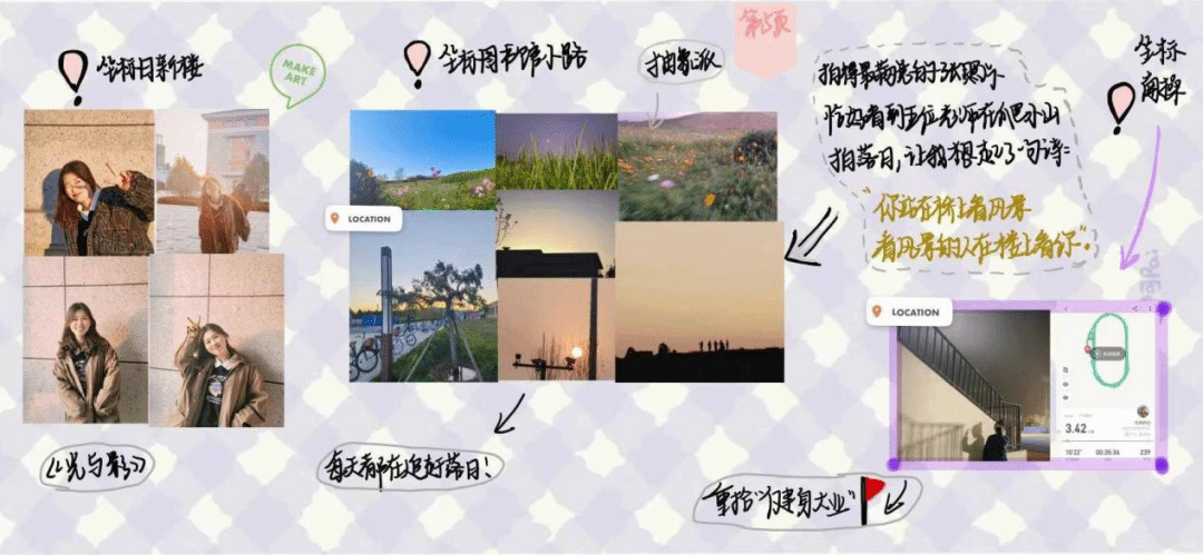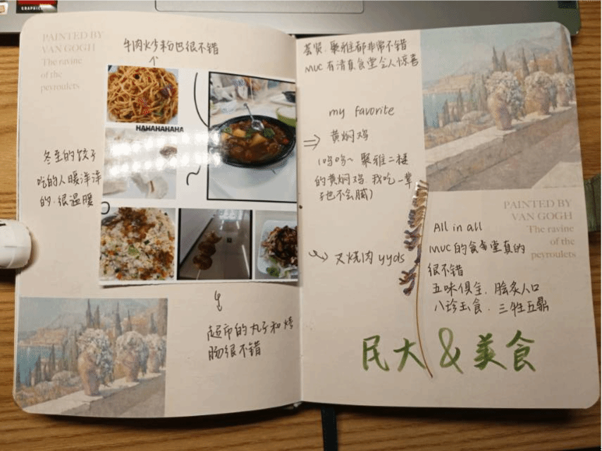手帐里的每一张照片都是我觉得有必要记录下来,希望传递给大家温暖和感动的。所以作品的标题很通俗,甚至有点简单,就是“在民大的幸福生活”。我分了几个部分来记录:学习、寝室、辩论、学生会、业余。这种分类或许不完善、不科学,但里面的每一部分对我而言都很重要,它们让我在民大遇见了更好的自己。希望你在看这些照片的时候也能会心一笑,发现属于你的小确幸。