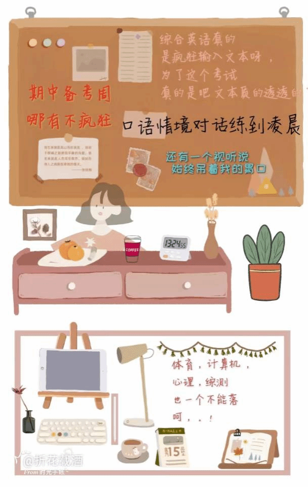 第一二张图片有关专业课学习和考试周。纵艰难险阻,疾风知劲草,我所热爱的东西, 我就一定要让它发光。第三张是读书感悟,上了大学后最明显的感受就是有自己独立的时间,可以去看自己喜欢的书。如细雨过后的梧桐,洗去了浮华,透出了青绿。在清闲午后,子落日黄昏。用眼睛读书,用心读书,读不尽精彩丰富的书。这种感觉和节奏真是蛮好的。第四张是有关好朋友的。