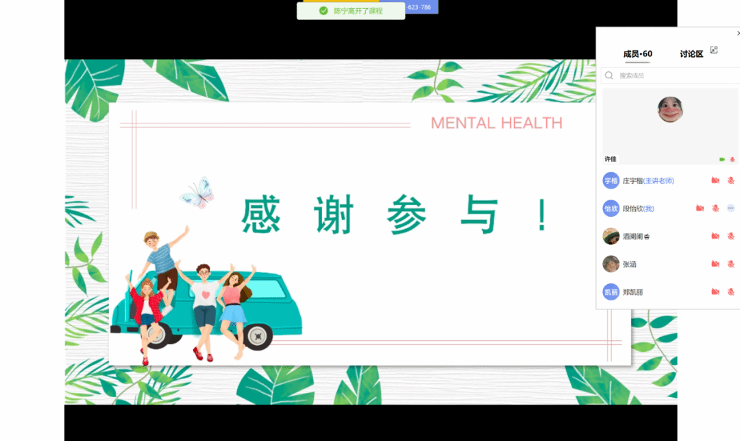 那缘缘老师先是表达了对于各小组微电影作品的肯定,赞扬了同学们能够从身边发现心理问题的能力,同时也考虑到了各位同学在生活中可能遇到的一些情绪问题,那缘缘老师鼓励大家发现问题要及时寻找解决办法,或者向他人倾诉,也希望大家能够多多关注周边同学的情绪,热心帮助他们解决心理问题。