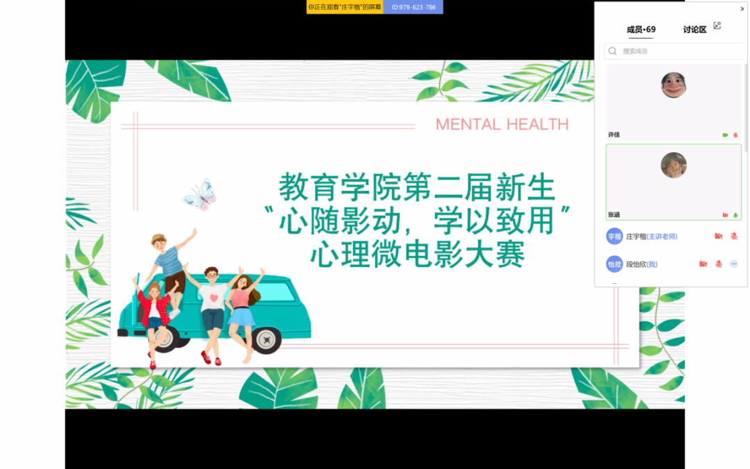 14:30活动正式开始,本次活动由心理健康课课代表张涵担任主持。主持人在介绍参会老师、活动主题、赛制设定、评分规则等相关信息后宣布了展播的开始。