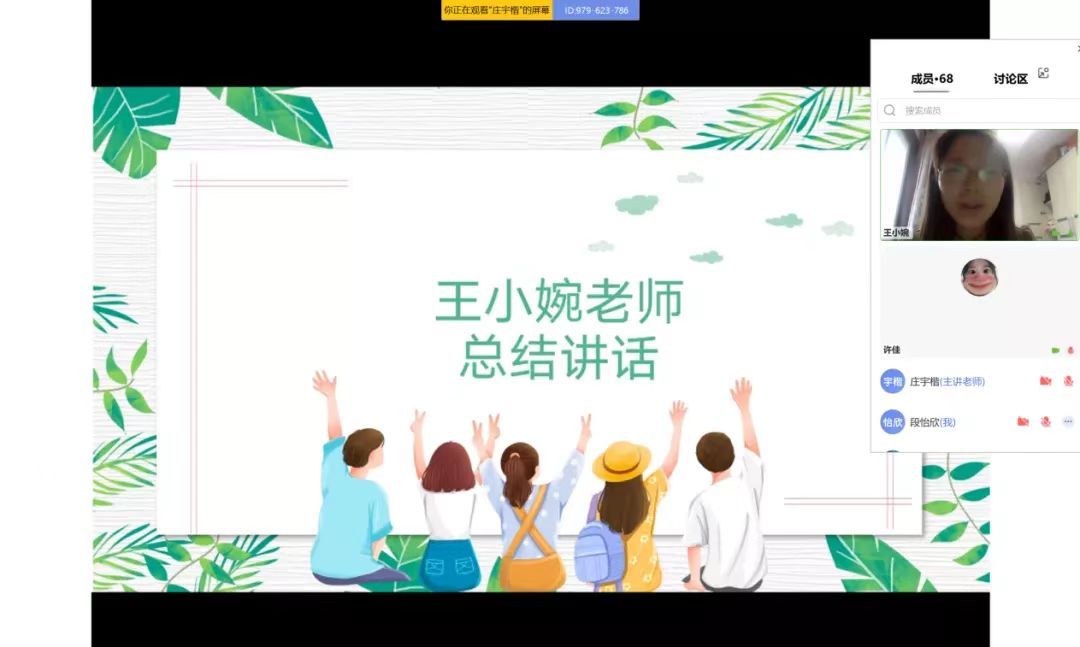 最后,王小婉老师对此次活动进行了总结。小婉老师首先对出席本次活动的评委老师和为此次活动精心筹备、用心组织的同学们表示感谢,并且肯定了各小组为更好地展现作品所付诸的努力。小婉老师表示,尽管心理健康课已经结束,但希望大家能够从中受益,提升自己的心理素质和自我调节的能力,并借用各组微电影中的精彩话语作为对同学们的祝愿:希望同学们能够拥抱自己,勇敢蜕变,做自己的摆渡人,哪怕一切无法改变,也要学会与自己和解;希望同学们能够记得自己心中的山与海,记得玫瑰成长于荆棘,未来无限可期;希望同学们以生命为永恒,明晰存在,得到勇气,走向自由;愿所有人都能有勇气去爱这个世界,也都能够得到这个世界温暖的爱。