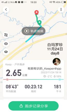 作为本学期一直没有返校的同学,我一直很想参与到学校组织的各种活动中去,奈何现实原因所阻,只能通过参加线上的会议讲座来获得校园生活的实体感。所以当这次跑步活动的通知一出来,我就去询问了负责人同学,得知未返校同学也可以参加时,便果断报了名。因为是在家里,没有学校标准化的跑道,只能自己找地方“溜达”,路上城市的烟火气息无一不在提示着,我们生活在一个多么和平、安宁的环境中。虽然偶尔会忘记打卡,但是在这些日子的参与中,我的心情却真的在路途中得到了纾解,或许这就是锻炼身体的意义和魅力所在吧。