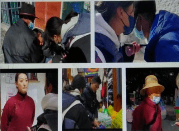 采访中的藏族老人、年轻人和本地商人