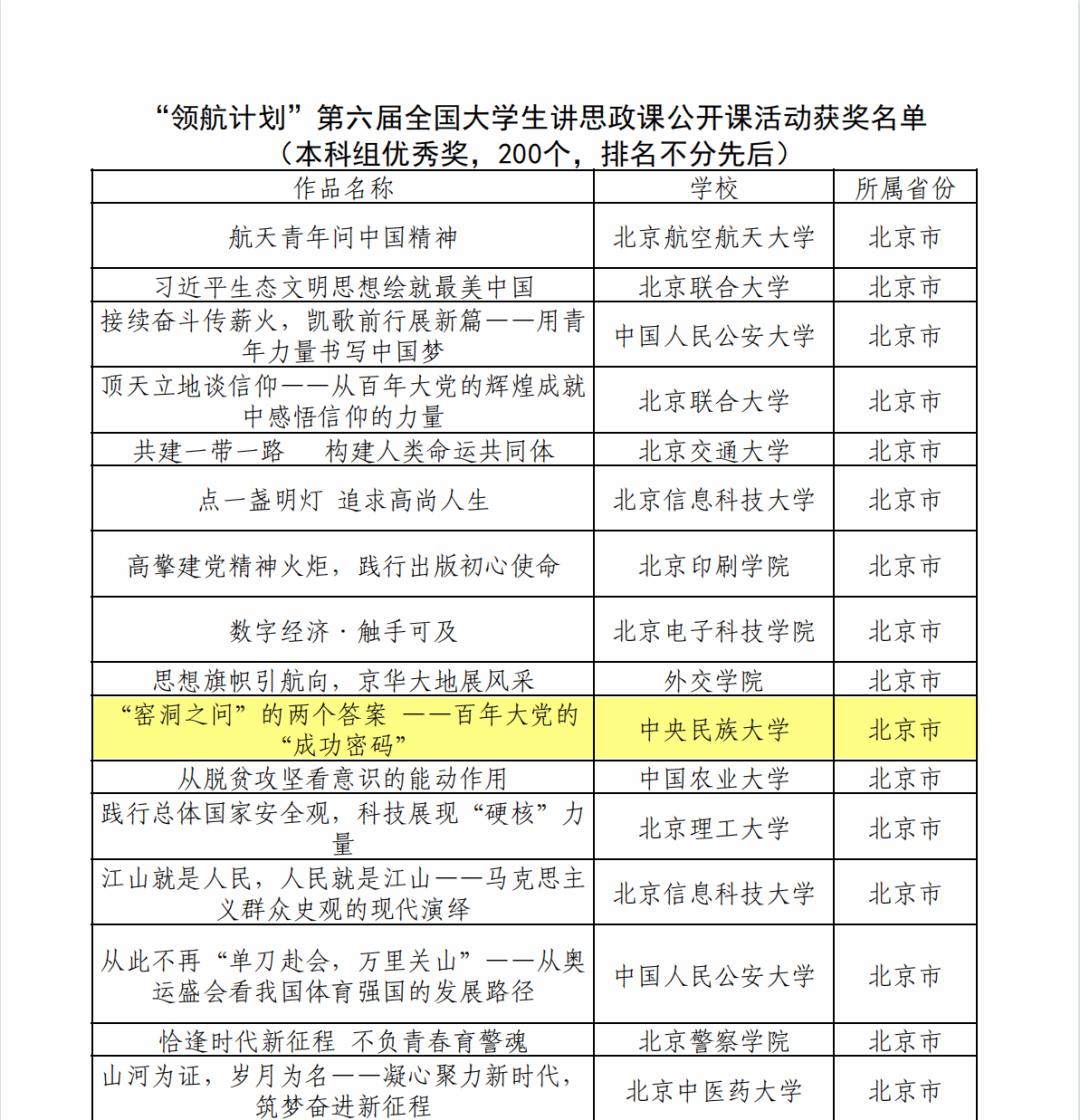 3月29日,第六届全国高校大学生讲思政课公开课展示活动获奖名单公示,本科组共360部作品获奖。其中,我院本科生和管理学院、新闻与传播学院本科生在马克思主义学院教师的指导下共同创作的思政公开课《“窑洞之问”的两个答案——百年大党的“成功密码”》荣获第六届全国高校大学生讲思政课公开课展示活动优秀奖。