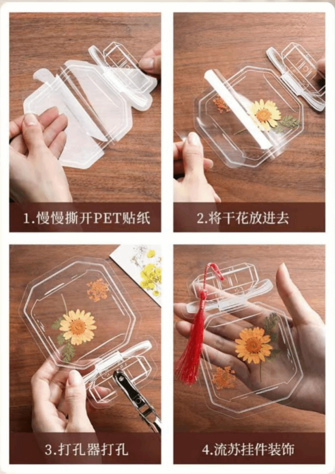 每名参与人员将获得两份书签材料包,领取时工作人员还将提供打孔器和流苏帮助书签设计;每名参与者还将会有一份额外备用材料,如果书签意外损坏,请及时联系工作人员领取更换;书签由各位参与人员自主设计,但一共需要有三种及以上的花类。