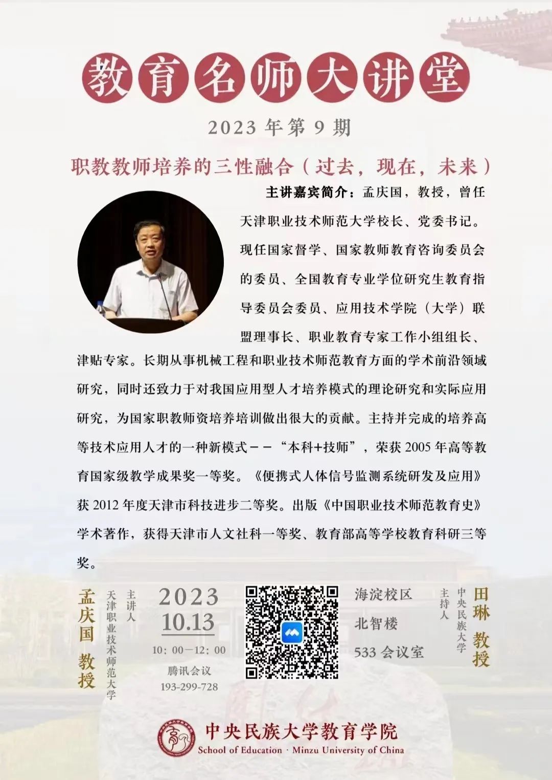 教育名师大讲堂|2023年第9期《职教教师培养的三性融合(过去、现在、未来)》