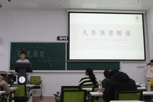 刘鑫宇同学从颈部酸痛的分类、成因以及治疗方式向我们进行了系统的科普,讲述了该类症状的生理原因和禁忌症。“颈部酸痛”是当今学生常见的症状,通过这次宣讲,同学们不仅了解到了颈部酸痛的成因还学习了治疗颈部酸痛的方法,收获颇丰。