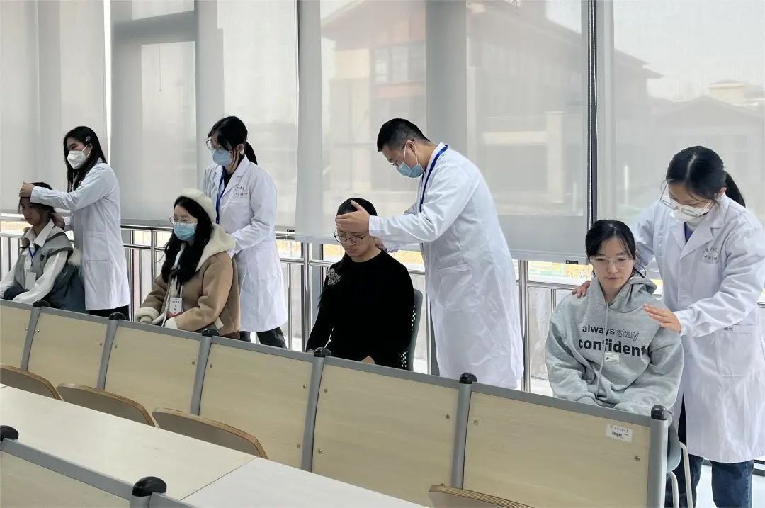 北京中医药大学中医学院硕士研究生资艳进行了“巧招助缓解压力:睡个好觉”的主题宣讲。她从睡眠与压力的关系入手,介绍了睡眠不足对身心的影响,提出了助眠缓压的巧招,并带领现场的同学们一起学习了穴位按摩、站功、导引等中医助眠方法。宣讲结束后,教育学院和“三月三文化交流协会”协助北京中医药大学中医学院宣讲团队开展了中医推拿、中医问诊、香囊制作等体验活动,同学们积极参与,在体验中放松自我,感受中医药的独特魅力。