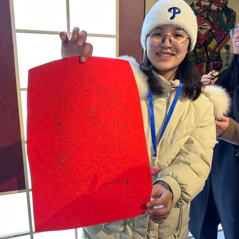 东院参观过程中,两院学子深入学习蒙藏学校旧址(暨中华民族共同体体验馆)发展沿革及党的百年民族工作的辉煌历程,感受到中华各民族在漫长历史进程中所共同凝聚成的优秀文化。随后,同学们踏入了大美中华“蜀豫里”主题展。中华民族优秀文化体验项目以“革命旧址+红色展览+非遗体验”为发展模式,将河南和四川两地的文化精华搬进展厅。两院学子在此亲手体验非遗技艺,欣赏美丽的民族服饰,感受特色饮食文化,并体验制作了传统年画。在“一步一景一画卷,移步换景画中游”的沉浸式互动体验中,同学们真切领略各民族共创共享的中华乐章、中华味道、中华神韵、中华风貌,领悟到蜀、豫两地文化在丰富民族精神内核、铸牢中华民族共同体意识方面的重要意义。