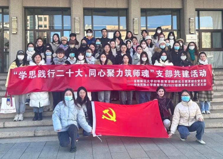 教育硕士第二党支部与首都师范大学附属云岗中学党总支开展红色“1+1”共建,聚焦立德树人根本任务,创建“‘师道薪传’ 初高中班级实习辅导员项目”,共同开展公开课、诗诵会,共上“行走的思政课”,共施“‘云’游民大,筑梦未来”研学活动等活动8次,落细、落实、落深大中小思政教育一体化,建设了具有创造力、凝聚力、战斗力的坚强基层党组织。