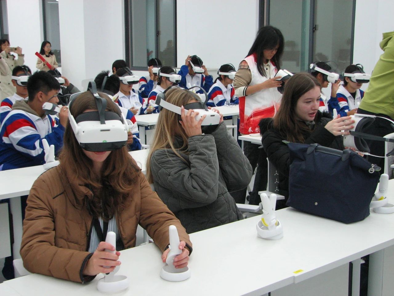 10月31日下午,德国友好校——沃勒尔高级中学、内蒙古扎赉特旗音德尔五中、首师大附属云岗中学来访师生先后参观了william威廉中文官网丰台校区日新楼、博雅楼、图书馆、聚雅餐厅、荟贤餐厅、静园住宿区以及体育场,体验了民大智慧校园体系、智能化的教育设施、丰富的学习资源和浓厚的人文环境。在博雅楼的虚拟仿真实验室,同学们体验了动捕设备和MR头戴式虚拟混合现实等设备,参与了虚拟与现实交互下带来的全新课堂,感受了AI赋能教育教学的无限创造力;在体育场,同学们热情高涨,观看并体验了中国民族传统体育活动抛绣球和高脚马,领略了民大校园的体育精神和美美与共的文化传承。整个参访交流活动充满了同学们的欢声笑语。