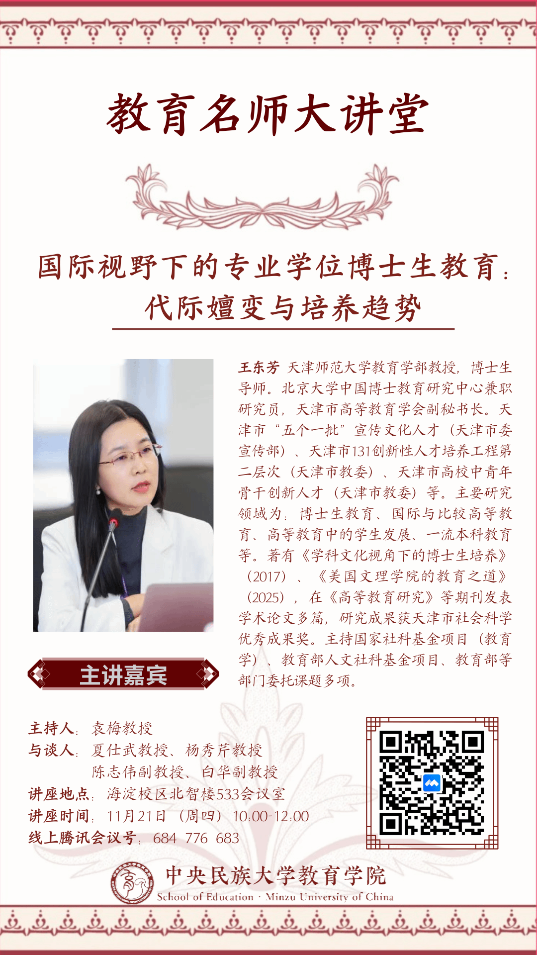 教育名师大讲堂预告 | 国际视野下的专业学位博士生教育: 代际嬗变与培养趋势