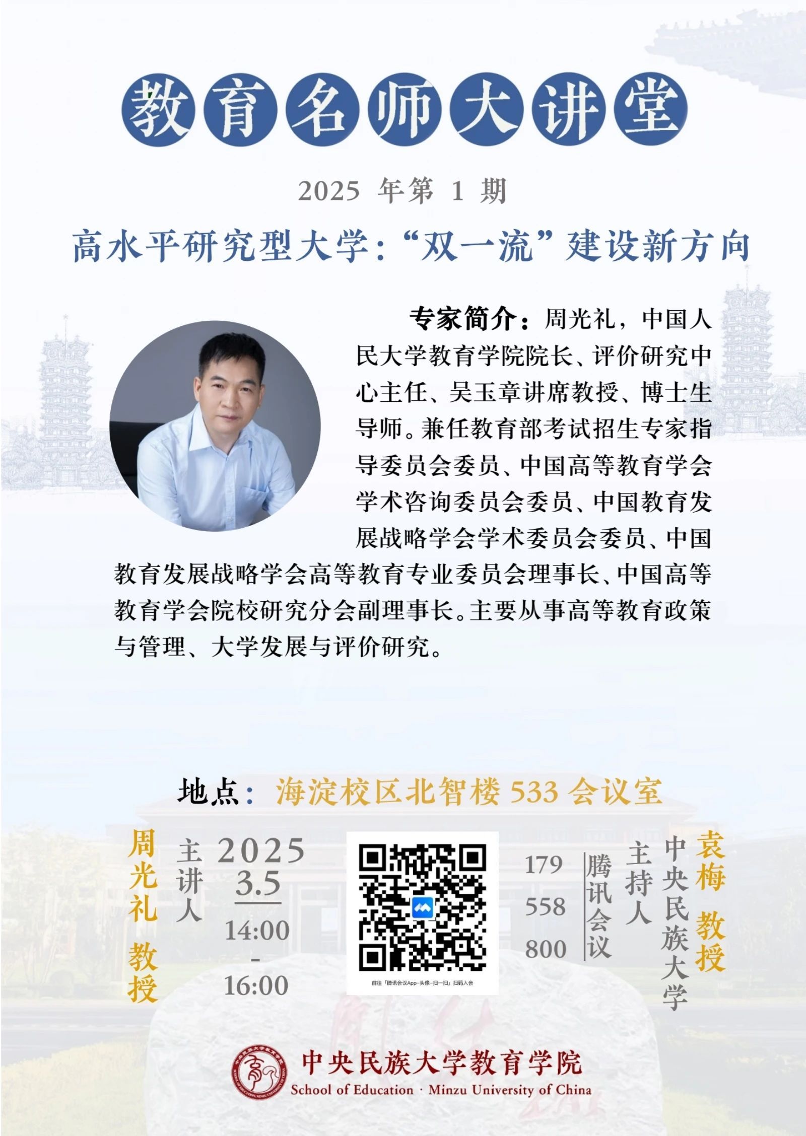教育名师大讲堂第一期预告 | 周光礼:高水平研究型大学:“双一流”建设新方向