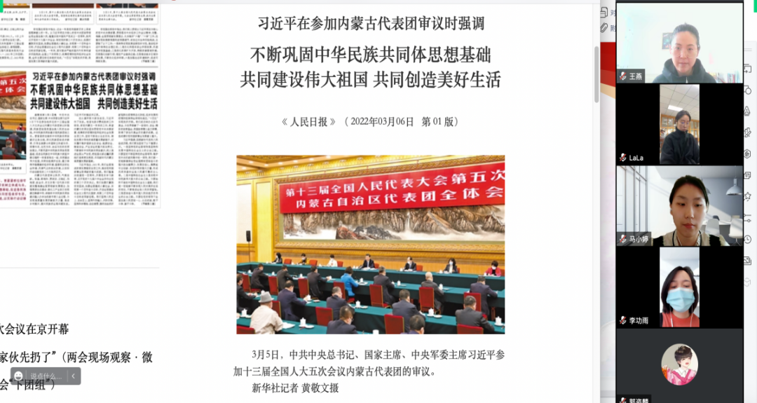 3月4日至5日,全国政协十三届五次会议和十三届全国人大五次会议在北京召开。3月5日下午,中共中央总书记、国家主席、中央军委主席习近平于十三届全国人大五次会议内蒙古代表团审议中发表重要讲话。教育学院通过召开党委理论学习中心组扩大学习、线上开展全院教职工学习会及学生党支部专题学习会、组织专题研讨等活动,深入学习贯彻两会精神和习近平总书记在参加内蒙古代表团审议时的重要讲话精神,深入理解并学习政府工作报告。