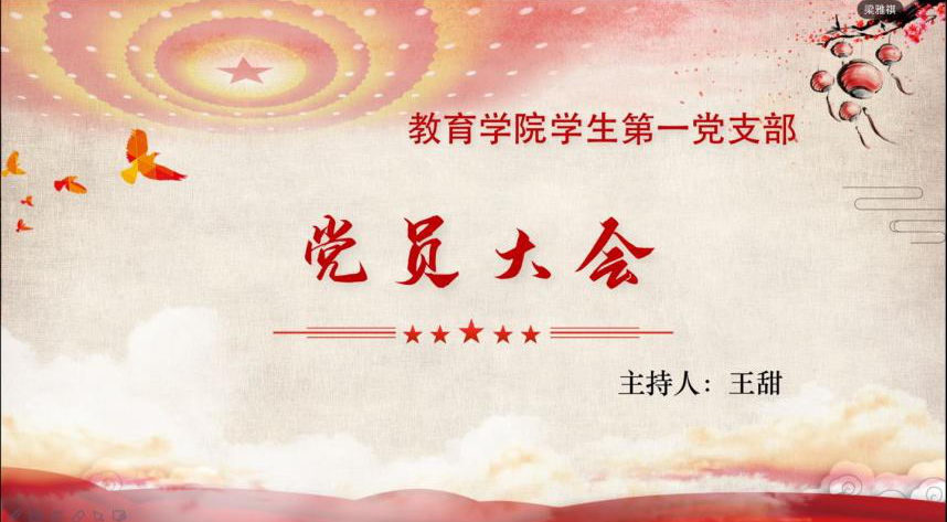 为进一步促进党支部特色化发展,并开展新一批学生党员发展推优工作,教育学院学生第一党支部于2022年4月2日通过腾讯会议线上召开第二次党员大会。本次会议由支部书记王甜同志主持,党支部全体党员与教育学院2020级教育学班同学共同参与。本次大会分为三个部分:一是明确支部建设目标,二是明确支部目标指导下的党员个人任务,三是进行本批次学生党员发展推优工作。