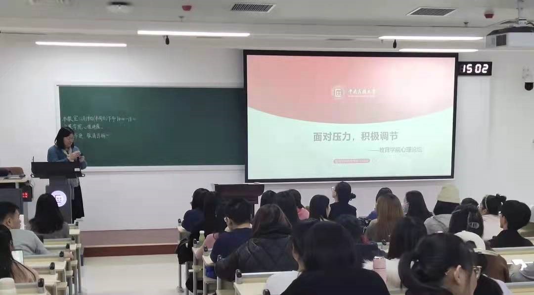 针对临近期末学生学业压力繁重的现状,为帮助同学们在期末周有效应对学习压力,保持乐观良好的心态,我部筹备开展以“面对压力,积极调节”为主题的心理论坛活动,邀请教育学院陆小英老师作为主讲嘉宾,我部部长李相军同学为活动主持人,鼓励研究生和本科生前来参加、共同交流学习,从专业角度为教育学院学生解决学业压力问题提供可行性路径。活动结束后,撰写了本次心理论坛推文。