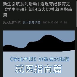 《新生引航系列活动|遵规守纪教育之<学生手册>知识点大比拼 就医指南篇》