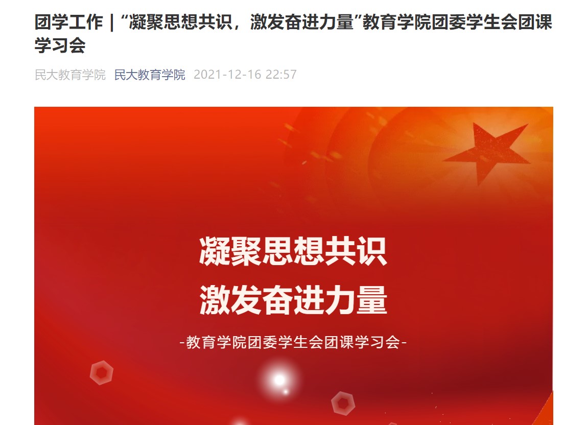 《团学工作|”凝聚思想共识,激发奋进力量“教育学院团委学生会团课学习会》