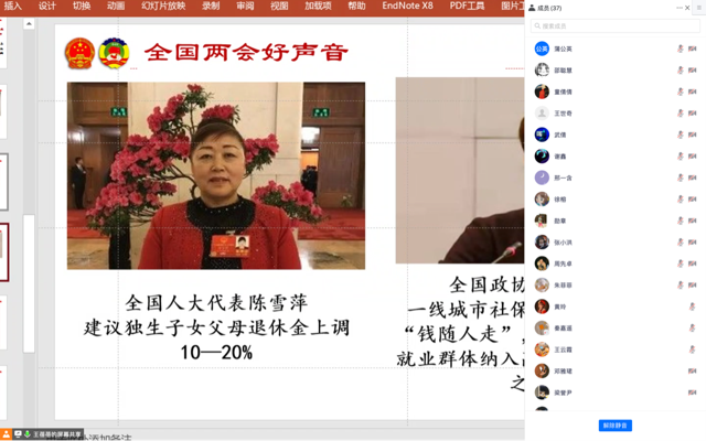 本团支部为了便于讨论,划分为8个团小组,就会议视频、文件等学习资料展开小组讨论。组内成员通过微信群自由讨论、分享心得体会,由小组组长汇总组内学习成果,会后提交文字版学习心得。自由讨论环节气氛热烈,每一位团员都展现出高昂的学习热情,畅所欲言,表达对全国两会的热切关注,抒发对国家民主制度的感悟,表达作为当大青年的责任和担当。