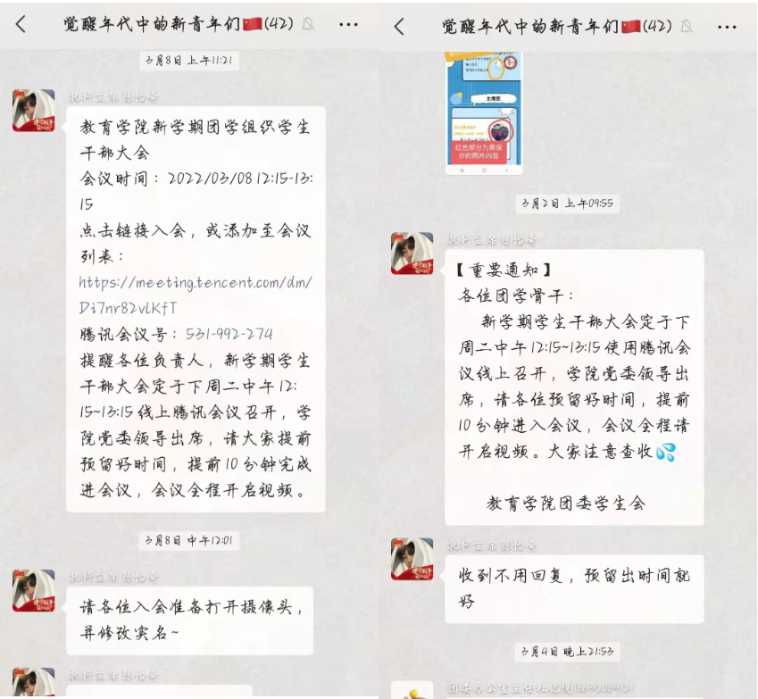 收集每次青年大学习的团委成员学习截图,监督大家按时进行团课学习,加强青年思想教育。