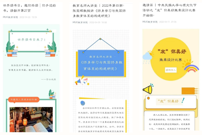 2.对教育学院团日及团学活动进行拍照、总结,相关推送共计3期,包括: