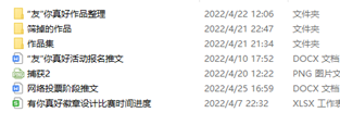4月14日-4月24日,文体部工作人员共收集了学院同学40份作品,审核与择优工作正在有序推进,预计在4月30日前与宣传部对接推出创意短视频活动的结果推送。