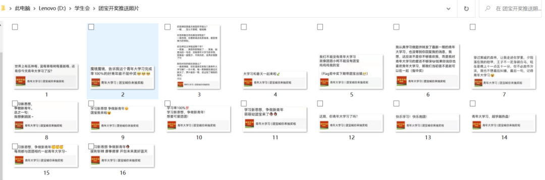 1.开展团委抽奖活动,完成活动筹备,并撰写两次推送,对于过去半年认真学习青年大学习的同学进行奖励,激励大家完成青年大学习。