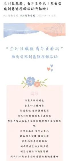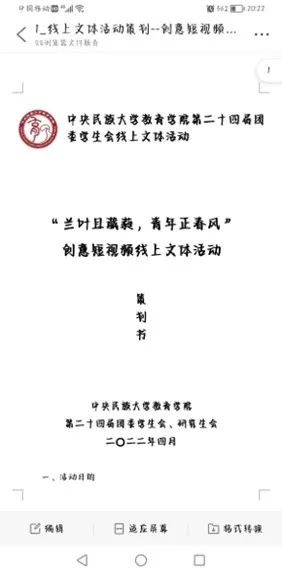 4月11日,经过与研会的沟通交流、老师的修改指导,线上创意短视频活动的策划最终确定,并完成了创意短视频活动的预告文案,与宣传部对接。