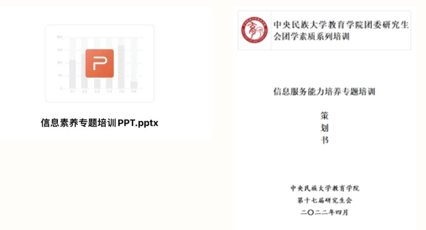 2.完成教育学院团委研究生会团学素质系列培训之信息服务能力培养专题培训策划、讲稿和PPT的制作。